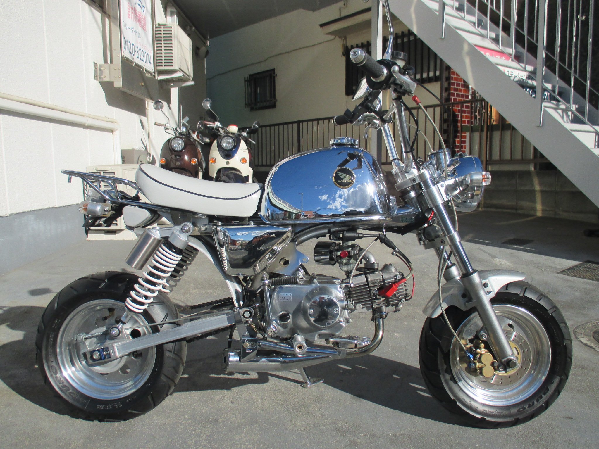 修理・整備はもちろん・4miniカスタム、パーツ取り付け等にも力を入れています。そしてバイクの買取りも致します。買取り金額もご納得して頂けるよう頑張らせて頂きますので、是非一度査定をして頂ければと思います。