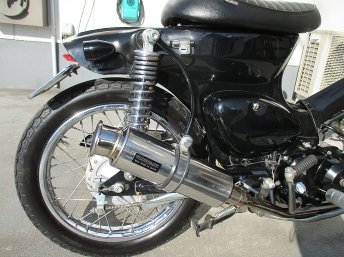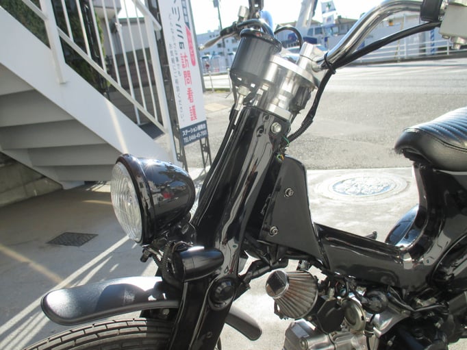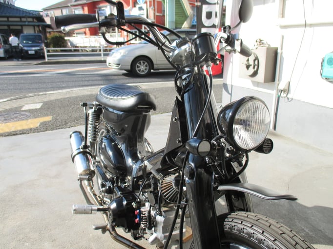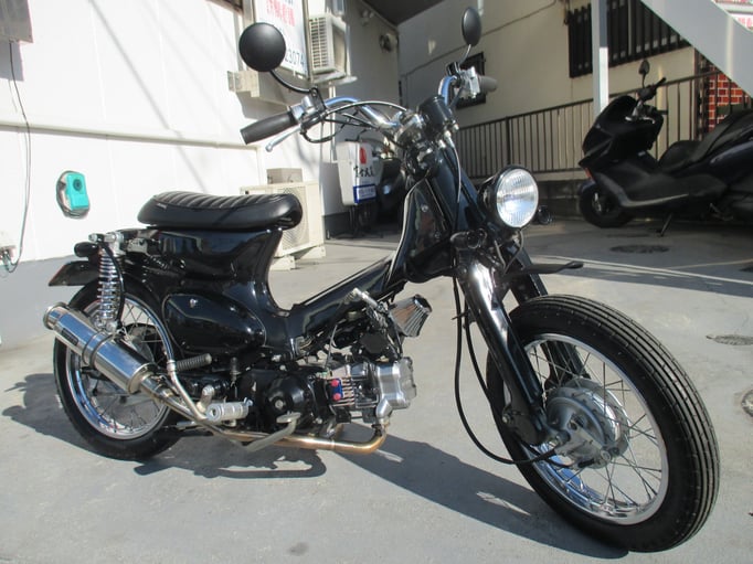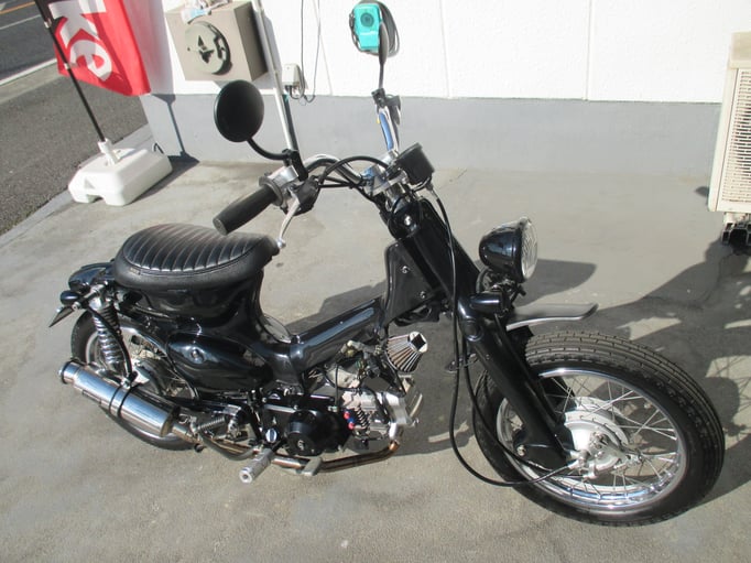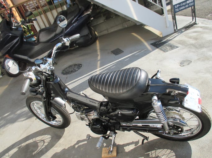 スマートでクラシカルにイメージチェンジしたカスタムカブは如何ですか!流行に流されることなく洗練されたスタイルとシブメのブラックで落ち着いた雰囲気のどなたでも楽しんで頂ける車輌になっております🎶さり気なくオシャレな車輌でカブならではの乗り易さはオートバイ初心者に安心してお乗りいただけますよ〆この機会に是非ご検討ください☆