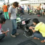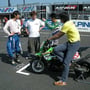 10月4日KAZE主催のKSR STクラスに出場して来ました。1年3ヶ月振りのレースになるため楽しみ半分、不安も半分と言う感じでした。何しろぶっつけ本番なのでどうゆうマシンなのかも分からず、フリー走行3周だけで決勝を迎えて、なんと第1ライダーが私になってしまって『マジで』って感じでした。予選は無くグリットは決められていて、付いて見ると前には沢山いてかなり後方からのスタートになった。